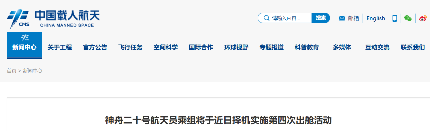 中國神舟二十號乘組近日擇機第四次出艙分享到: