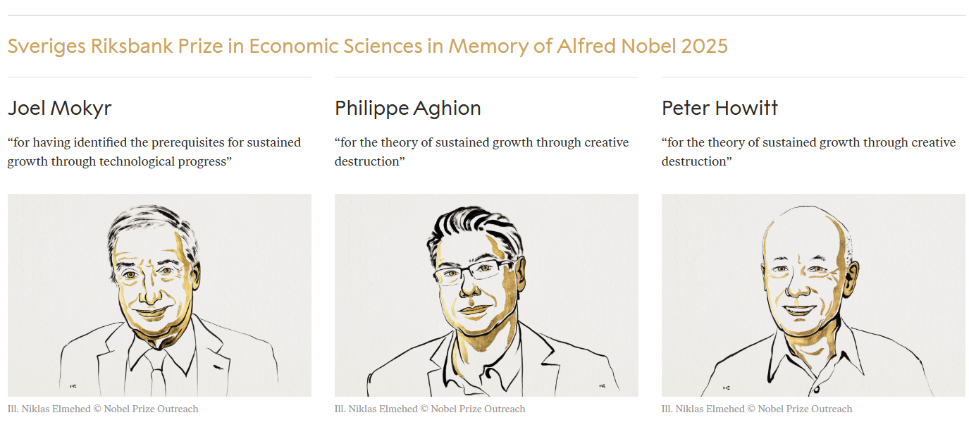 三位經濟學家分享2025年諾貝爾經濟學獎分享到: