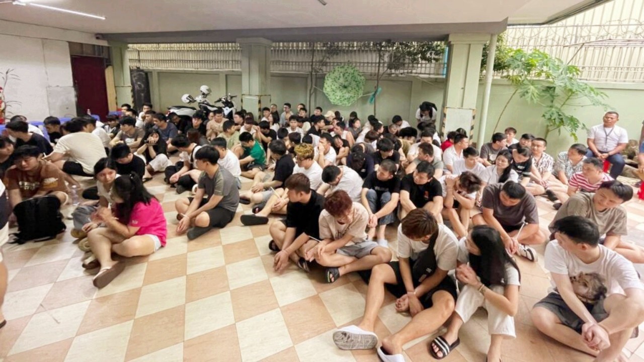 柬埔寨執法人員7月18日突襲上丁省(Stung Treng)一處詐騙中心後。柬埔寨打擊網絡詐騙委員會秘書處圖 柬埔寨國家打擊網絡詐騙委員會秘書處還介紹說,在這輪聯合執法行動中,已有70餘名重要涉案人員移送法院起訴,這些案件主要涉及網絡詐騙、謀殺、人口販運等嚴重犯罪。另已遣返2800多名外國人。