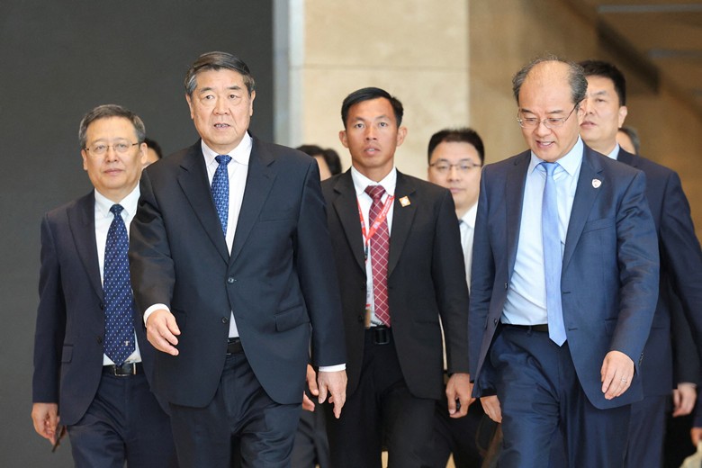 2025年10月26日,中美兩國經貿團隊在馬來西亞吉隆坡第二日磋商,中美經貿中方牽頭人、國務院副總理何立峰,商務部國際貿易談判代表兼副部長李成鋼當天上午抵達會場。央視新聞網圖