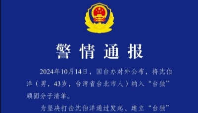 2024 年10 月14 日,國台辦對外公布,對沈伯洋、曹興誠和“黑熊學院”實施懲戒。如今他被立案偵查,更是大快人心。