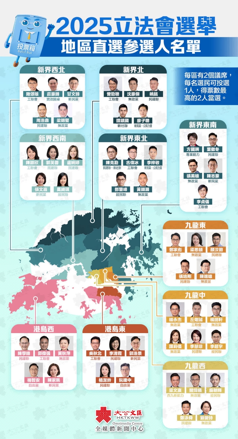 香港中通社資料圖 從目前的提名情況來看,三個界別90個議席呈現全競爭局面:地區直選接獲51份提名、功能界別接獲60份提名、選舉委員會界別接獲50份提名。 其中,由選民直接選出的地區議席競爭最為激烈,10個選區有9個呈現“5爭2”局面,九龍中更有6人競爭2個席位。參選名單顯示,既有資深的政黨政團參選,也有不少獨立參選人競逐,更有區議員等深耕地區的人士,決心從服務地區轉向服務全社會。 由各功能界別選民選出的28個功能界別中,26個為兩人爭一席,社福界競爭最激烈,有3人參選,勞工界3個議席有5人報名參選。選舉委員會界別則共有50人爭奪40個議席。