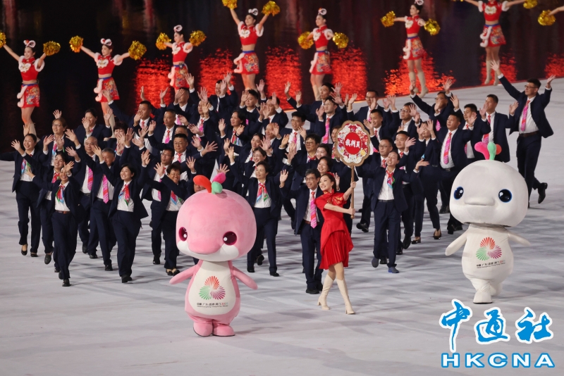 11月9日,中華人民共和國第十五屆運動會開幕式在廣東奧林匹克體育中心舉行。以“圓夢未來”為主題的開幕式包括“同根同源、同心同緣、同夢同圓”三個篇章,展現粵港澳大灣區的壯闊圖景。圖為運動員入場。(香港中通社記者 謝光磊 攝) 香港中通社圖片