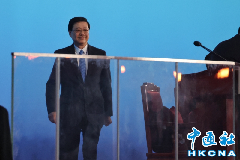 11月9日,中華人民共和國第十五屆運動會開幕式在廣東奧林匹克體育中心舉行。以“圓夢未來”為主題的開幕式包括“同根同源、同心同緣、同夢同圓”三個篇章,展現粵港澳大灣區的壯闊圖景。圖為第十五屆全運會組委會執行主任、香港特區行政長官李家超致辭。(香港中通社記者 謝光磊 攝) 香港中通社圖片