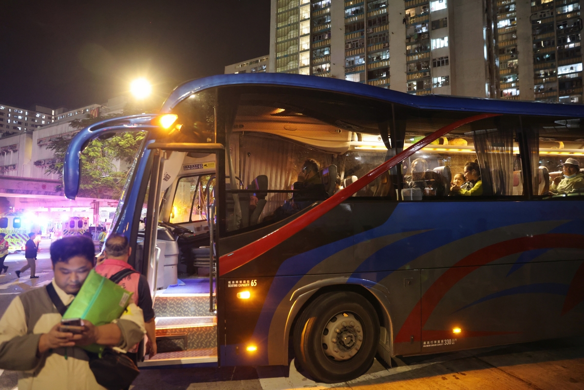 香港特區政府安排巴士將受火警影響的居民送往過渡性房屋安置。