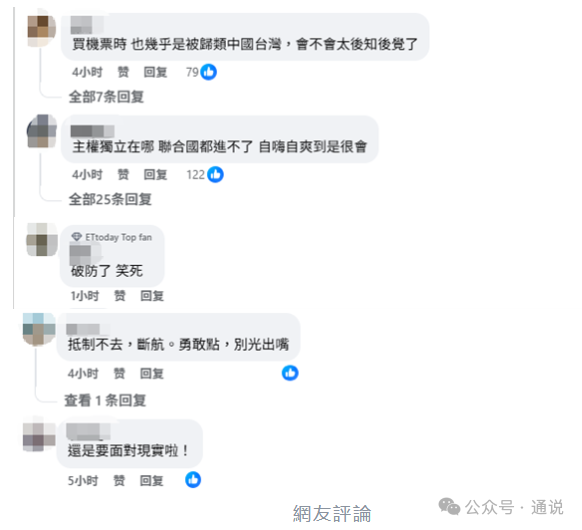 在社交平台上相關消息的評論區,不少台灣網友表示,一直以來,台灣旅客在購買機票時的相關選項都是“中國台灣”,諷刺綠營到現在才抗議,“會不會太后知後覺了”。 “主權獨立在哪裡?聯合國都進不了。”有網友一針見血地指出,綠營從頭到尾都是在“自嗨自爽”,喊話其“還是要面對現實”。 不少網友認為,民進黨當局也只敢關起門來說干話,並不敢採取什麼實質性反制措施。 此前,據新加坡外交部文告,新加坡總理黃循財重申,新加坡奉行明確而一貫的一個中國政策,反對“台灣獨立”,引發台灣綠營人士跳腳。對此,台輿論諷刺,新加坡講了實話,“青鳥”(民進黨支持者)就破防了。世界上絕大多數國家都反對“台獨”,只是民進黨當局自欺欺人、不願意承認。 國台辦發言人陳斌華早前指出,事實一再表明,一個中國原則是國際關係基本準則和國際社會普遍共識,是人心所向、大勢所趨。“台獨”失道寡助,窮途末路。民進黨當局罔顧事實,欺騙島內民眾,只會自取其辱。 【編輯:胡雪石】