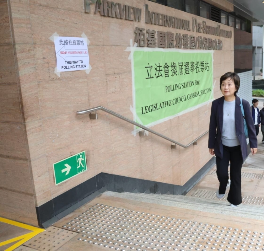 圖源:蔡若蓮fb 教育局局長蔡若蓮到票站投票,並到訪一間小學及一間中學的投票站,了解秩序和設施安排。她亦赴九龍塘教育服務中心及教育局辦公室,為推動選舉的員工打氣。