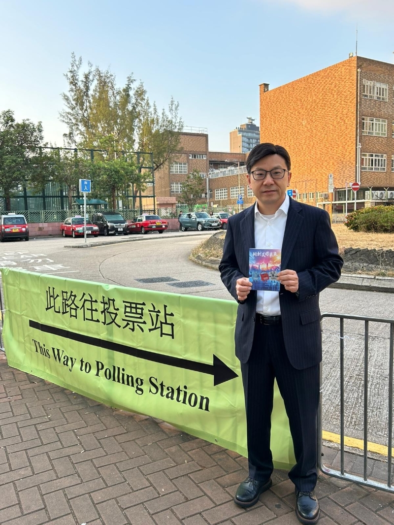 圖源:曾國衛fb。 政制及內地事務局局長曾國衞早上到灣仔會展的選委會界別票站巡視,之後前往東區少年警訊會所投票站投票。他形容立法會選舉對香港,對行穩致遠、一國兩制,以至良政善治、由治及興,甚至對大埔火災善後工作亦非常重要,呼籲踴躍投票。