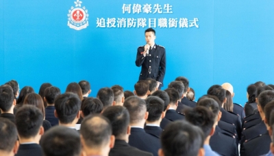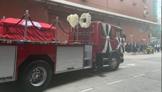 香港新聞網12月19日電 (記者 譚暢)香港消防處19日在九龍紅磡世界殯儀館,為已故消防隊目(追授)何偉豪舉行最高榮譽喪禮。