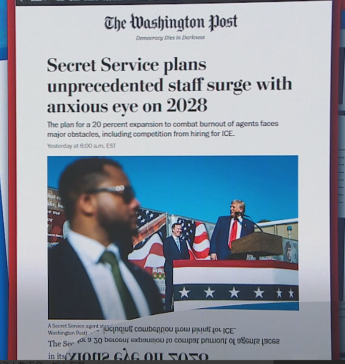 美國特勤局將在2028年前招募4000名員,總規模將首次突破萬。華盛頓郵報報道截圖。