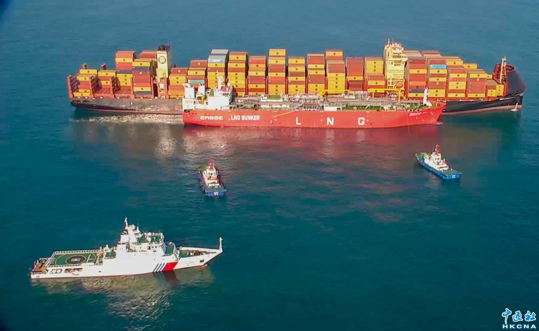 1月13日,在深圳海事局的全方位服務保障下,LNG加注船“海洋石油301”在深圳大鵬灣外LNG應急錨地成功為“MSC GABRIELLA”輪加注5238.5立方米LNG燃料。(許羽豐 攝)