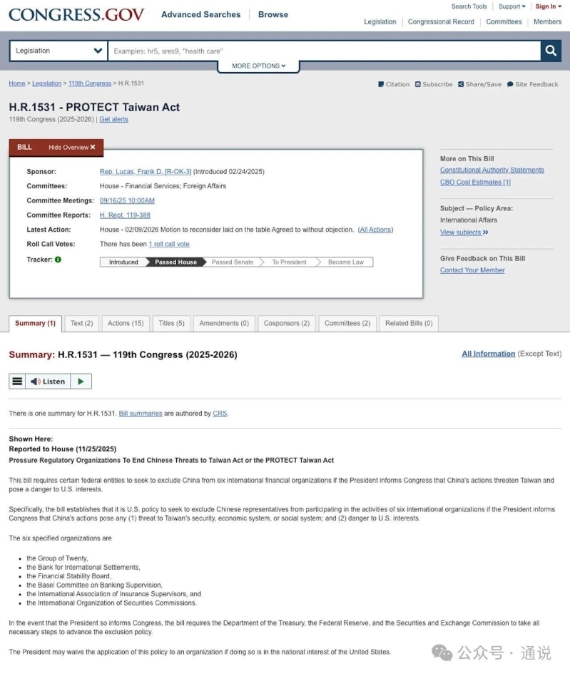 通說:美國又要“保護台灣”?美國國會眾議院當地時間9日以高票通過所謂“保護台灣法案”,威脅將大陸逐出國際金融系統,以“保護台灣”。不過,島內不少網民一眼看穿,直言美國去年挑起關稅戰也未能撼動中方分毫,新法案更像是“打腫臉充胖子”,將不出兵包裝成所謂對華“懲罰”。