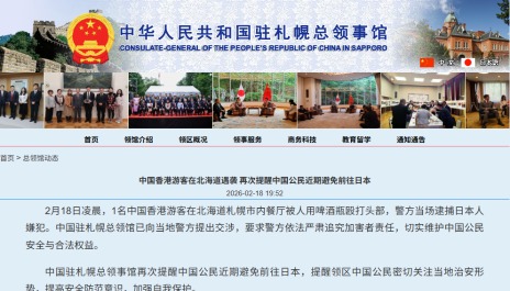 香港中通社2月19日電 就有港人在日本被襲擊一事,香港特區入境事務處19日表示,在得悉事件後,已即時透過外交部駐港特派員公署及中國駐札幌總領事館了解並跟進事件,並按當事人意願提供可行協助。特區政府已就事件向日本駐港總領事表示關注,要求日本政府依法保障香港旅客在日的人身安全。