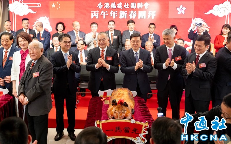 2月27日,香港福建社團聯會舉行丙午年新春團拜(香港中通社圖片) 李家超致辭時表示,祖國就如一匹健壯駿馬,在高質量發展的大道上日行千里、蹄疾步穩;香港特區也馬不停蹄,主動對接國家戰略,全速融入國家發展大局。香港會快馬加鞭,把握機遇,充分發揮在一國兩制下“背靠祖國、聯通世界”的獨特優勢,在金融、航運、貿易、創科等領域的工作將以更大力度在國家發展藍圖中發揮更大作用、貢獻更大力量。 李家超說,香港福建社團聯會一直以來都是愛國愛港的中堅力量,廣泛凝聚閩籍鄉親,積極參與社會事務,支持特區政府依法施政。他肯定聯會多年的貢獻,相信在新的一年,閩籍鄉親會繼續助力特區政府推動經濟多元發展,為香港注入更多活力、凝聚更多正能量;也繼續成為連接閩港兩地的橋樑,促進閩港兩地深度交融、優勢互補,共同開創共享共贏、共建共榮的美好未來。 香港福建社團聯會主席施清流致辭時表示,作為扎根香江的閩籍愛國愛港社團,聯會將繼續做香港穩定發展的堅定守護者、深化閩港交流合作、講好閩港故事和中國故事。在李家超行政長官和特區政府帶領下,共同為香港由治及興貢獻閩籍力量,共譜閩港融合發展新篇章。 當天,香港中聯辦副主任孫尚武、福建省政協副主席林文斌、香港國安公署副署長陳楓、外交部駐港特派員公署副特派員張長偉、香港立法會主席李慧琼、行政會議召集人葉劉淑儀擔任主禮嘉賓,多名政府官員、立法會議員出席,現場氣氛熱烈。(完) 【編輯:李冉】