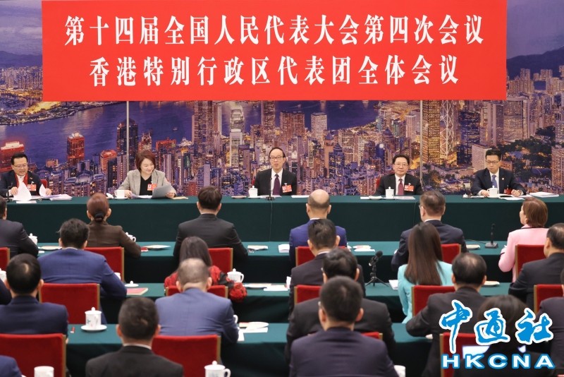 3月8日,十四屆全國人大四次會議香港代表團全體會議在人民大會堂香港廳舉行,審議生態環境法典草案。(香港中通社記者  謝光磊 攝) 香港中通社圖片