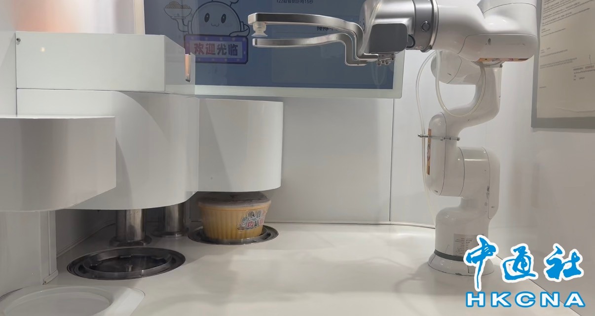 香港中通社3月16日電(記者 譚暢)香港首個智能餐飲機器人近日正式開業。中通社記者16日在新界大埔“幸匯”商場實地探訪發現,機器人從“炒菜”到出餐,全程用時僅需兩三分鐘,便可“喜提”一碗熱乎乎的蓋澆飯。 據了解,該款名為Hey Food的智能餐飲機器人,由華潤創業建設投資有限公司整合內地創新技術方案與本地商業經驗推出,為香港市民於偏遠地區、繁忙地區、深夜等場景提供多元化用餐選擇。 機器人24小時服務,可現製現售熱食,從由接單、翻熱至出餐全程自動化操作。買家既可通過機器屏幕現場點單,也能通過“幸匯”app線上下單。