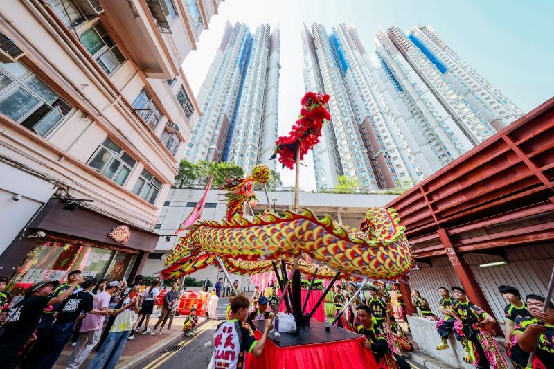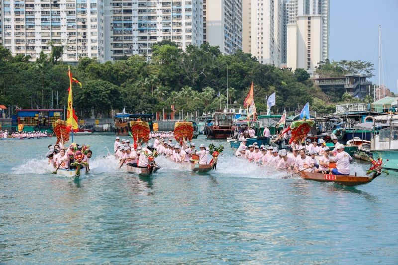 龍舟拜廟,百年“遊龍”傳統。 每年洪聖寶誕另一特色傳統項目“龍舟拜廟”是傳承百年的文化儀式,延續至今,有祈福的意義。相傳神明於巡視海面時會乘坐龍舟,因此漁民承傳此習俗,於特別日子划龍舟至洪聖古廟前,龍舟隊伍會伴隨着鼓聲於廟前海面上來回划三次,象徵向洪聖爺三鞠躬,叩謝神恩,以祈平安。龍舟隊今年無懼風浪,增至8隊龍舟隊參與儀式,更顯熱鬧歡騰。 “龍舟拜廟”儀式開始前,先由同慶公社有限公司總值理陳國樺及多位同慶公社有限公司值理擔任主禮嘉賓,為廟前的龍⾈進行“點睛”儀式,求海神護蔭平安。“點睛”過後,龍舟隊伍隨著喧天⿎聲揚起雙槳,從洪聖古廟對出的海面出發,五彩繽紛的龍舟在香港仔避風塘內“行禮”,震撼而莊重的謝神場面,蘊含著深厚文化的敬神儀式。 最受矚目的重頭戲——大型賀誕巡遊作為文化節的核心,為2026鴨脷洲洪聖傳統文化節寫上最精彩的一筆。今年賀誕巡遊有16支巡遊隊伍、參與人數超過800人,包括香港東莞社團總會、海洋公園、華人廟宇委員會等社會各界人士參與,一同穿梭整個鴨脷洲,充滿傳統特色,現場氣氛十分熱鬧。 賀誕巡遊萬眾同慶,巡遊隊伍下午齊集於鴨脷洲洪聖廟廣場,先後有華人廟宇委員會、鴨脷洲街坊學校及聖文嘉中英文幼稚園帶來武術、鼓樂及舞蹈表演炒熱氣氛。街道兩旁聚滿圍觀市民,沿途不少近距離欣賞氣勢磅礡舞金龍、醒獅表演的市民及旅客,更吸引大批市民雀躍上前觸摸金龍及醒獅求好運,將活力與喜慶氣氛傳遍整個鴨脷洲。(完) 【編輯:黃璇】