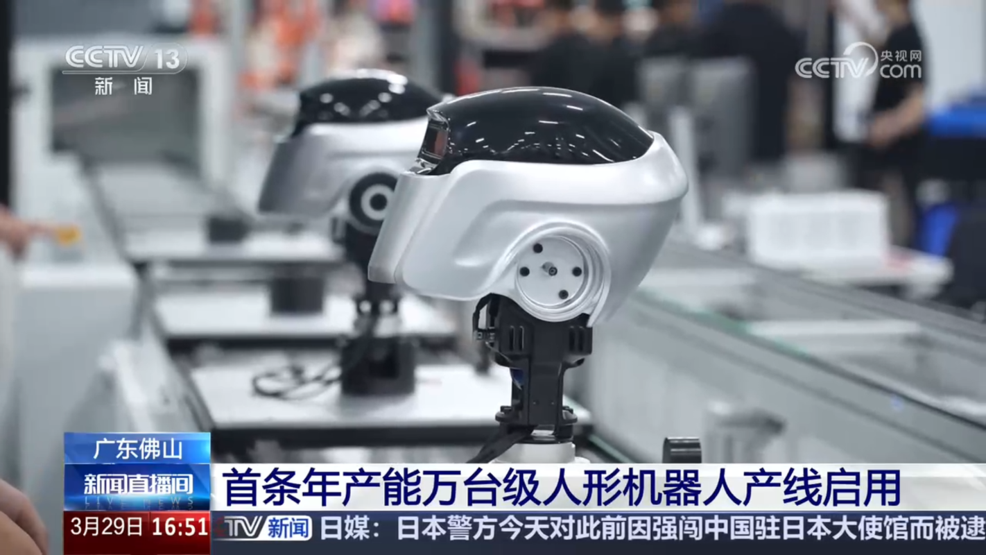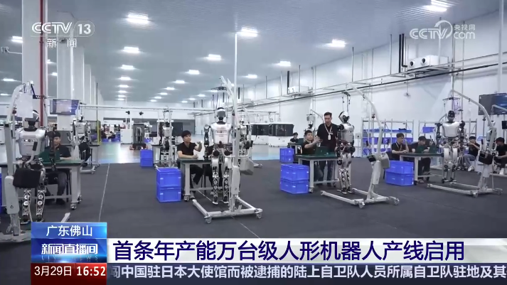 3月29日,中國首條年能萬台級人形機器人產線啟用。圖源:中國央視網