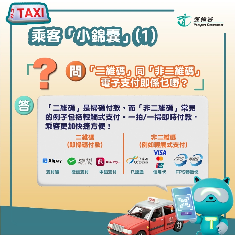乘客上車前可查詢司機提供的電子支付方式,車窗亦會張貼相關標識。 逾4.7萬司機就緒 對遊客友好度大幅提升 香港特區政府運輸署助理署長馮惠筠昨日(3月31日)表示,的士業界已準備就緒,現有超過4.7萬名的士司機安裝了支援多種電子支付的系統。八達通透露,現有逾4萬名司機註冊商用版八達通App或配備八達通流動收款機,按年增加四成,交易額按年增六成半,並會繼續豁免的士司機交易手續費。 的士需提供電子支付一事獲不少香港市民點讚。也有內地網友指出,來港後終於不用揣一堆港幣、到處找ATM、怕沒零錢被拒載,微信、支付寶直接掃碼,和內地打車一樣方便,不用額外換匯;同時電子支付有記錄,丟東西也更容易追溯。 香港旅遊發展局數據顯示,2025年全年訪港旅客數字約為4990萬人次,按年上升12%;其中內地訪港旅客約3780萬人次,按年增長約11%,佔全年訪港旅客量76%。非內地市場的旅客約有1210萬人次,同比增長15%。 訪港旅客人數持續攀升,便捷支付成為交通行業提升競爭力的關鍵。電子支付新規的實施,也是回應這一點。WeChat Pay HK公布,微信收錢碼支持人民幣及港幣收款,乘客以人民幣付款會自動兌換為港幣存入司機戶口,司機可免手續費隨時提款至香港銀行戶口,現時全港已有逾4萬的士司機開通相關服務。 香港運輸署提醒,乘客上車前可查詢司機提供的電子支付方式,車窗亦會張貼相關標識。若發現司機未提供電子支付,可記下日期、時間、車牌及司機資料,透過1823政府熱線或交通投訴組熱線2889 9999舉報。新例實施後,乘客仍可使用現金繳費,司機須備有不少於100元的鈔票及硬幣找贖,並必須接受現金付款。(完)