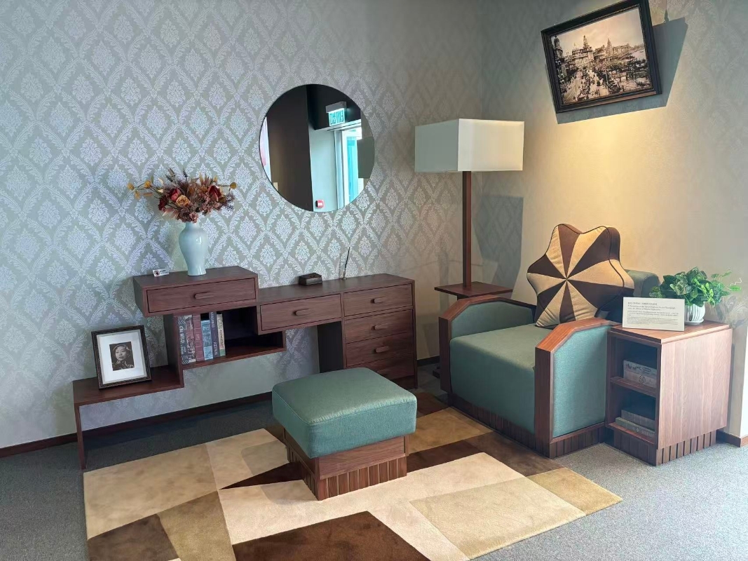 “相知無遠近”展覽於香港都會大學中國現代文學館舉行。(香港中通社記者 黃璇攝) 展覽從一萬七千件捐贈中精選逾一百二十件展品,包括張愛玲與宋淇夫婦的書信往來、珍貴手稿、個人照片、證件及生活遺物。現場復刻了宋家客廳——當年張愛玲與宋氏夫婦共話文學、文化名人交流雅集的空間,桌椅擺設均為原物。都大團隊運用三維掃描及360度全景影像,將客廳原貌轉化為數碼孿生模型,營造虛實交錯的觀展體驗,並以動畫短片呈現張愛玲小說內容,讓傳統文學與現代數碼科技相互交融。
