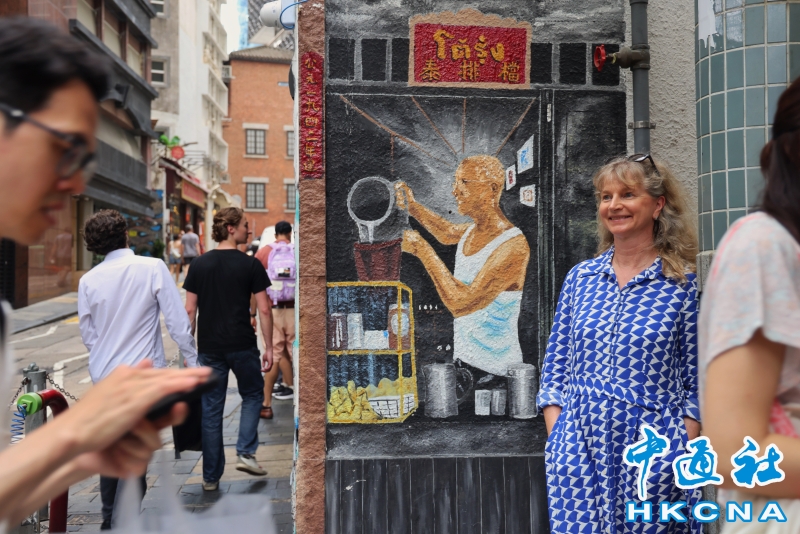 •   4月11日,香港中環荷李活道一帶的街頭壁畫區迎來大批市民遊客,色彩繽紛的塗鴉牆前人群絡繹不絕,不少年輕人手持相機或手機尋找最佳角度拍照留念,藝術氛圍與遊客熱情交織,形成假日獨特的城市風景線。圖為遊客紛紛駐足壁畫前拍照留念。(香港中通社記者 鄧梓傑 攝) 香港中通社圖片