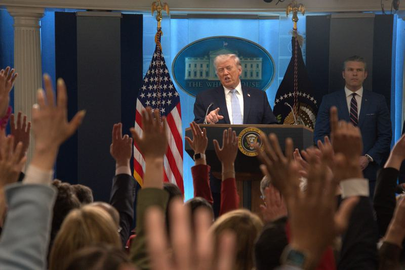 資料圖:4月6日,美國總統特朗普在首都華盛頓白宮舉行的新聞發佈會上講話。新華社照片