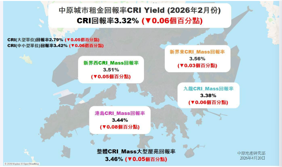 中原地產20日最新數據,樓市昇幅跑贏租金未變,回報率創逾年半新低,料第二季回報率與H按息轉趨持平。(圖源:中原地產) 美聯集團行政總裁(住宅)馬泰陽在記者會上表示,2026年上半年香港住宅市場交投量將持續上升,一手交投有望錄得約11300宗,將創七年同期新高;二手住宅成交估計可達約26600宗,將創五年同期高位。 馬泰陽指出,近期香港住宅市場多重利好因素接踵而至,這些因素帶動購買力加速湧入住宅市場,買家信心逐步回穩,整體入市意願明顯轉趨積極。 他表示,主要因素包括人民幣持續昇值以及租金屢創新高等。除熱錢持續流入所帶來的積極影響之外,香港本地經濟基本面亦不斷改善,居民的置業意願隨之回升。與此同時,香港樓價自高位回落後已累計反彈約10%,“追漲”心態漸起,不少持有中小型單位的本地業主趁勢放售,再換購大單位重新入市,進一步帶動成交量放大。 據了解,“美聯樓價指數”2026年第一季度環比上升4.57%,創近三年同期新高,亦為近八年同期次高。進入4月,香港樓價升勢延續,最新報143.37點,年內累升6.43%,昇幅已超去年全年5.14%的水平,并創近兩年半來的新高。(完) 【編輯:錢林霞】