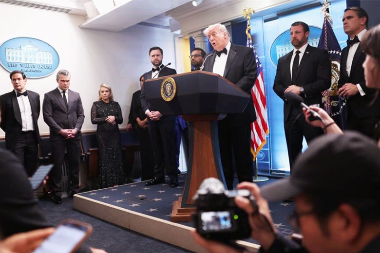2026年4月25日,美國總統特朗普在華盛頓白宮舉行的新聞發佈會上講話。新華社發 嫌疑人有何“政治動機”? 多家美媒4月26日披露,31歲嫌疑槍手科爾·艾倫在事發前幾分鐘向家人發送一份“宣言”,自述他開槍背後的“動機”,并表達對特朗普政府的不滿。 艾倫稱對“本屆政府所做的一切感到憤怒”。英國《衛報》分析,嫌疑人“宣言”中暗指對特朗普政府一系列政策不滿。他稱“不願讓戀童癖、強奸犯和叛徒的罪行玷污我的雙手”,是在影射震驚全球的愛潑斯坦案;提到“被炸飛的學童”,則指向美軍2月底轟炸伊朗小學一事。 艾倫在“宣言”中說,美國政府官員是他開槍的目標,優先度按級別從高到低排序,但特勤局特工、警察、安保人員等只在“必要時”會成為目標,酒店員工和其他賓客“根本不是目標”。 艾倫還提到美國社會的種種問題,認為有人“受到壓迫”,有人甚至包括法官“不遵守法律”等。 4月26日晚些時候,在與美國哥倫比亞廣播公司的訪談中,總統特朗普對於艾倫的“宣言”,尤其暗指他與愛潑斯坦案關聯的部分非常憤怒,并稱槍手是“瘋子”。 除“宣言”外,美國媒體還注意到,嫌疑人來自民主黨主政的加利福尼亞州,2024年還曾向時任民主黨籍副總統哈里斯的總統競選團隊捐款25美元。