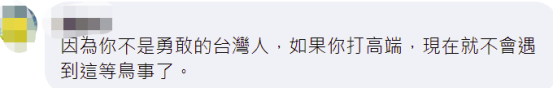 還有網友諷刺:“因為你不是‘勇敢的’台灣人,如果你打‘高端’,現在就不會遇到這等事了。”↓