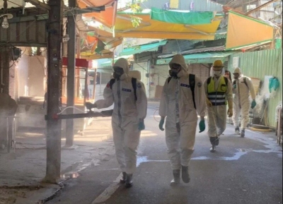 桃園街道消毒中 圖片來源:聯合新聞網