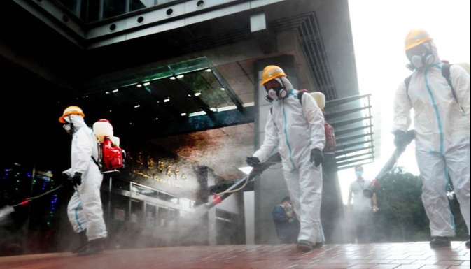台公衛人員消毒中 圖片來源:中時新聞網