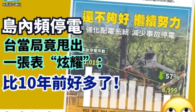 台灣近期多次停電,中時電子報3月16日曾報道,高雄燕巢一帶3月15日中午有2000戶停電,台電事後稱是一只小鳥碰觸帶電設備造成停電。台經濟部門負責人王美花還進一步解釋稱,台電有許多停電事故都是因為動物不小心觸碰導致的,再加上電線桿設在空曠處,不僅會有鳥襲,鄉下地方還會有猴子、蛇、松鼠等動物,“這個都是會碰到的問題”。結果真被她說著了。16日,基隆市總計有7831戶停電。台電基隆區稱,派人到現場調查發現有一只受傷、焦黑的松鼠倒在草叢中,很可能是鳥獸碰觸造成短路。 從小鳥到松鼠,台電一再把停電怪罪到動物頭上,引發島內輿論的憤慨。國民黨3月16日舉行記者會諷刺稱,王美花讓台灣成為“停電動物園”,明天不知道哪個動物會導致停電?新北市議員葉元之17日在臉書上傳一個惡搞視頻,將“流行疫情指揮中心”記者會場景改成“流行停電指揮中心”記者會,為闖入電力設備的小動物默哀,還呼籲民眾擔任“維護電力大使”,幫忙阻絕小動物,以免停電。台北市長、民眾黨主席柯文哲也忍不住嗆聲,呼籲有關單位誠懇面對、解決問題,以免“多講多給人笑話”。 對於王美花宣稱是小動物造成停電,國民黨“立委”蔣萬安稱這凸顯台灣整個電網安全非常脆弱,民進黨“執政”以來毫無改善。國民黨高雄市黨部發言人呂謦煒怒批,台電應擔負起穩定供電的責任,不要再牽扯上無辜的小動物。 【編輯:胡雪石】