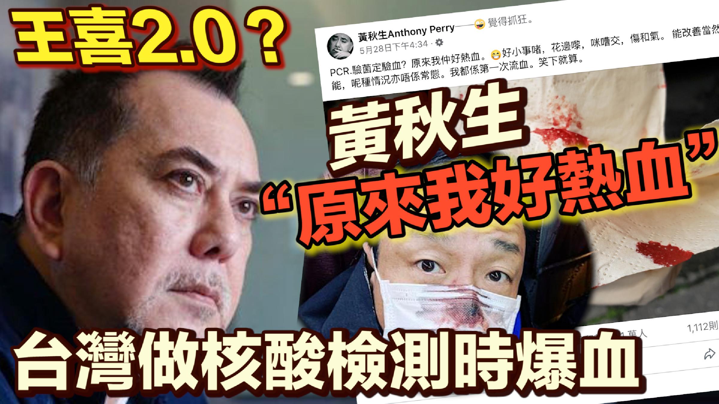 2019年香港“修例風波”期間,黃秋生曾公然支持“黑暴”,煽動仇恨,大肆抹黑特區政府和香港警方,引發廣大香港市民憤怒聲討。隨後於2020年5月,在香港呆不下去的他,高調離港赴台。 據悉,黃秋生此次是因為要搭飛機回香港,才會去做核酸檢測。他還發出一張血淋淋的照片,似乎是做核酸檢測時受傷流了鼻血。 他在另一篇帖文中補充說:“好小一件事,花邊新聞,不要吵架傷和氣。能改善當然好,若不能,這種情況也不是常態。我都是第一次流血。笑一下就算了。” 這與另一位“港獨”藝人王喜的遭遇何其相似。上個月初,王喜在入境台灣時,因核酸檢測被捅鼻捅到鼻血狂流,口罩上面全是血。