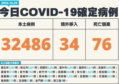 ● 29日台灣新增32520例新冠病例 台灣流行疫情指揮中心29日通報,新增32520例新冠肺炎確診病例,分別為32486例本土病例及34例境外輸入病例;另新增76例死亡。 ● 金門大橋通車一了居民30年心願