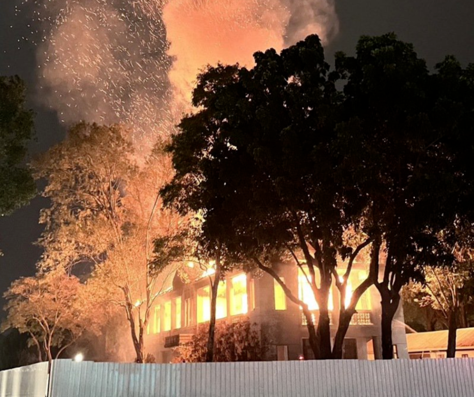5日凌晨1時許,號稱“傘兵搖籃”的屏東大武營區歷史建築隊史館發生大火,消防員趕到時發現濃煙直衝天際,火勢十分猛烈。大火4時許被撲滅,詳細起火原因仍待調查。(香港新聞網5日綜合) 【編輯:鄭竣凱】