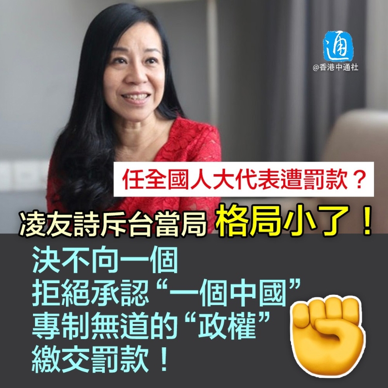 任全國人大代表遭台當局罰款? 凌友詩堅拒低頭!分享到: