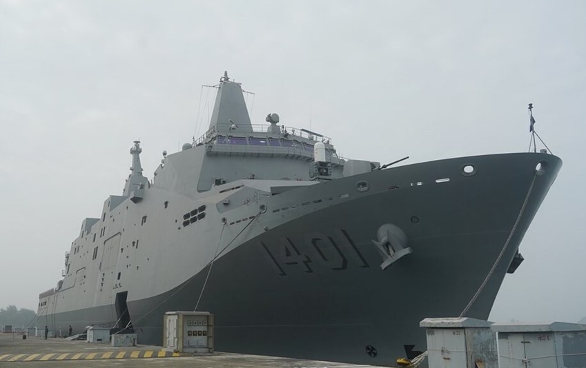 玉山艦 圖源:台灣“中央社” 據報道,玉山艦於2021年4月下水、2022年10月交艦。平時主要負責外島物資運補及人員運輸,戰時則編成兩棲特遣部隊執行兩棲作戰。軍方官員稱,玉山艦展現台軍“不對稱機動戰力”,擔負“拒止武力犯台”等作戰任務。 玉山艦長153米、寬23米,滿載排水量10600噸,是台海軍首艘萬噸級兩棲船塢運輸艦,外觀具隱匿構型。雖是輔助艦艇,但仍可掛載最多32枚台軍自造“海劍二”防空導彈、2門近防炮、1座MK-75艦炮,並停放2架直升機,能在外海獨立執行任務。(完) 【編輯:张依珊】
