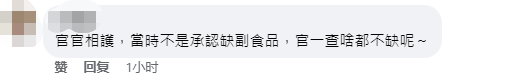 在社交平台臉書上,也有網友質疑,“官官相護,當時不是承認缺副食品,官一查啥都不缺呢。”↓