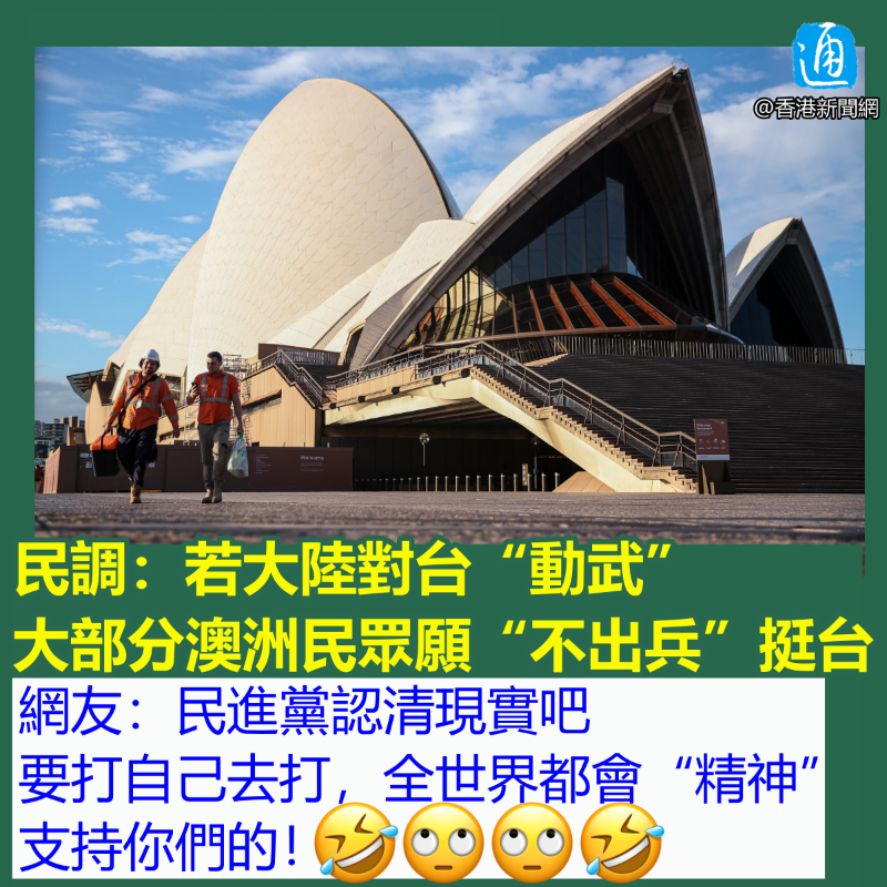 澳洲政府曾表態反對任何單方面改變台灣現狀的企圖。澳洲總理安東尼6月初在新加坡“香格里拉對話”亞洲安全會議上表示,澳洲支持美中對話,因為台海衝突將“對世界造成毀滅性影響”。 據台媒報道,澳洲外交政策智庫“羅伊國際政策研究院”(Lowy Institute)的年度民調發現,高達82%受訪者支持澳洲與美國的“安全聯盟”,儘管有3/4的人也認為,這意味澳洲可能被捲入亞洲的戰爭。 根據民調結果,有80%民眾支持接受台灣難民,76%支持“對中國(大陸)實施經濟和外交制裁”,64%支持“澳洲向台灣當局運送武器和軍需品”,61%支持“運用澳洲海軍,協助阻止中國(大陸)對台灣實施封鎖”。 只有42%的受訪者支持派遣“澳洲軍事人員前往台灣,協助‘抗中保台’”。 羅伊國際政策研究院公眾輿論領域負責人利偉恩(Ryan Neelam)指出,民調結果顯示,澳洲民眾“對衝突抱持謹慎態度”,但願意在不參戰的情況下支持台灣。 他說,“談到台灣受到軍事威脅和美國參與(台海衝突)的具體情況時,澳洲民眾傾向採取行動支持台灣,接受(台灣)難民、對北京實施制裁、運送武器和物資,甚至讓海軍參與,但這並不包括派兵參戰。” 澳洲的有關民調,可謂給島內的“台獨”分子和綠營支持者潑了盆冷水! 在有關消息的評論區,有台灣網友就怒氣衝衝地說:“若中國大陸‘侵犯’澳洲,台灣也會不出兵挺澳啦!” “塔綠班(民進黨)認清現實吧,要打你們去打,全世界都會精神支持你們的!”也有網友挖苦民進黨當局道。 翻查資料,日本早前的民調亦顯示,超過7成的民眾反對日本政府軍事介入台海危機。 據日本時事通信社去年11月報道,日本公益財團法人“新聞通信調查會”發布調查結果,儘管將近八成受訪者對台海情勢抱有危機感,但卻有超過7成受訪者不支持日本派自衛隊與美軍聯手對抗大陸。 民進黨當局天天高喊“抗中保台”,可一說到“出兵保台”就露餡了! 【編輯:汪彥希】
