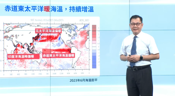 台氣象部門記者會 呂國臣指出,預估今年侵台的颱風則是接近正常機率,預估會有4到5個颱風侵台,且根據過去聖嬰年的狀況來看,侵台颱風的強度可能會比較強。 根據過去歷年資料,6到12月西北太平洋會生成21到25個颱風,侵台颱風個數則為3到5個。 夏季溫度及雨量方面,呂國臣指出,今年7到9月的氣溫以正常到偏高的機率最高,而台灣為在降雨偏少的範圍內,因此雨量則是預估為正常偏少。 另外,呂國臣表示,今年5月平均溫度為攝氏26.9度,跟氣候正常值差不多,但溫度分配上西半部較東半部還要高;今年梅雨季平均降雨量為382.7毫米,屬於正常偏少的狀況。 【編輯:鄭竣凱】