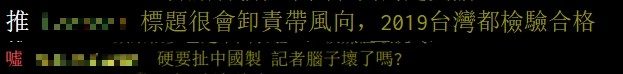 對此,島內網友紛紛回懟:“標題很會卸責帶風向,2019都檢驗合格。”“硬要扯中國製造,記者腦子壞了嗎?”