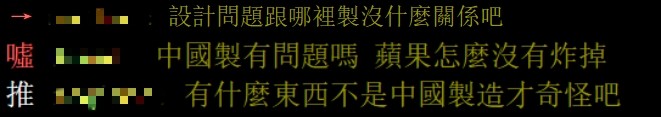 有網友表示:“身上穿的手上用的中國製造可多了”“有什麼東西不是中國製造才奇怪吧”“設計問題跟哪裡製沒什麼關係吧”“你手上iPhone 也是大陸製…”“牽涉中國製造實在是很好笑”。