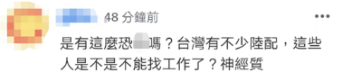 還有人稱,有這麼恐陸嗎?台灣有不少陸配,這些人是不是不能找工作了?神經質。↓