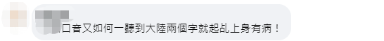 在臉書上,也有人諷刺稱,大陸口音又如何,一聽到大陸兩個字就起乩上身(鬼神上身),有病!↓