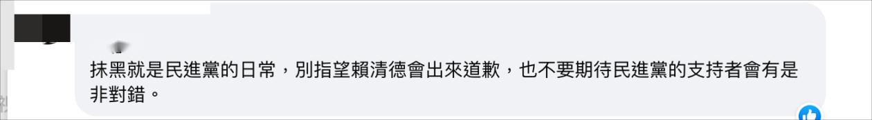 “抹黑就是民進黨的日常,別指望賴清德會出來道歉,也不要期待民進黨的支持者會有是非對錯。”↓