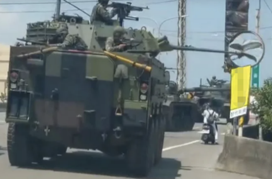 台陸軍演習出意外,八輪裝甲車炮管撞上路旁反光鏡分享到: