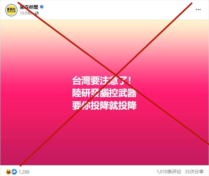 台灣“東森新聞”援引美國《華盛頓時報》報道稱,“大陸解放軍正在研發一種腦控武器,目的是要侵擾影響他人的腦部功能,據說可以達到兵不血刃,就讓敵軍屈服的效果”,這個武器就好比美國科幻電影《X戰警》中的X教授所擁有的超能力一樣,X教授可以直接閱讀他人大腦、控制對方思維和行動,而“大陸研發的腦控武器,能透過發射微波,或電磁射線等方式直接控制他人大腦。”“簡單來說他要你乖乖投降,你就會乖乖投降。” 報道最後還不忘大肆渲染“大陸軍事威脅論”,表示這個武器可能使用的地區就包括台灣,因此台灣人要注意了! 台灣網友看完這篇報道憋不住了,紛紛表示“對不起,笑出腹肌!”