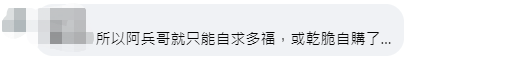 有網友稱,“所以阿兵哥就只能自求多福了,或乾脆自購了……”