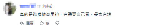 (截自吳欣岱臉書) 吳欣岱質疑,如果投資經費更新裝備只是為了應付考核,發生意外還要仰賴現場人員自學的TCCC(戰傷救護課程),且用自購的止血帶急救,“真的是有效益的投資嗎?” 這也引起台灣網友的熱烈討論。 很多人表示,並不意外有這種事情發生,在台灣當過兵的都知道,軍方下發的都是“高裝檢”用品,平時用的很多東西都要自己掏錢買:“這早就不是什麼秘密了”、“真的,長官有說”。