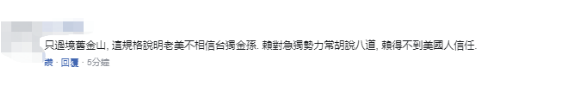 台媒曝光賴清德“過境”竄美行程,“不會到華盛頓”,台灣網友諷刺分享到: